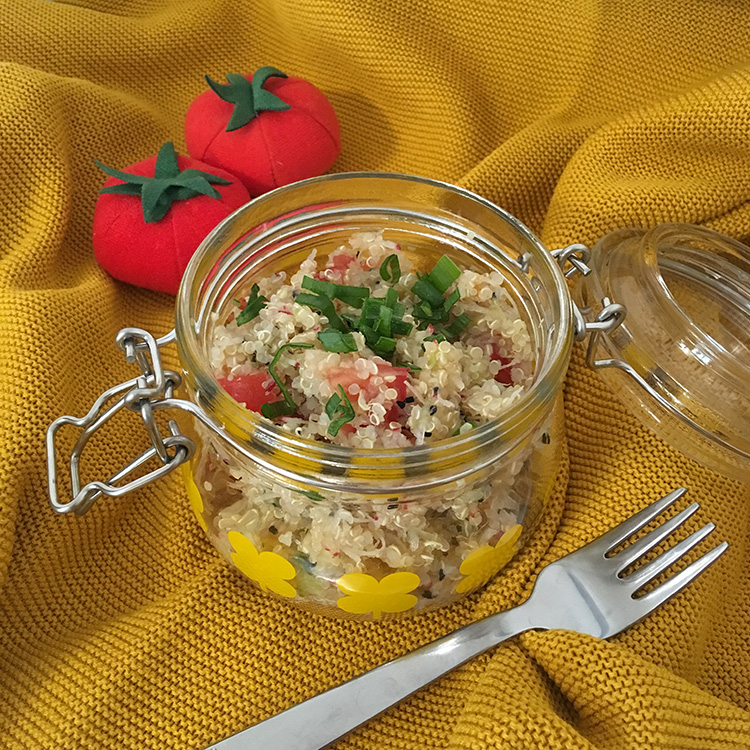 Komosa ryżowa to również żelazny pewniak. Ugotowaną porcję kaszy połącz z ulubionymi świeżymi warzywami (np. pokrojone drobno papryka, zielony ogórek, rzodkiewka, pomidor, szczypiorek) i dopraw suszonymi ziołami. Dodatek ogórka kiszonego, który zawiera witaminę C polepszy za to wchłanianie żelaza zawartego w kaszy. Sałatki na wynos dobrze zapakować