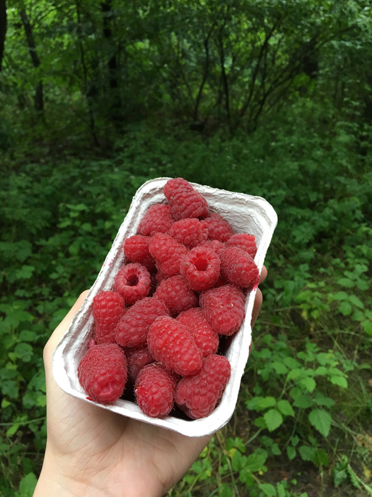 Posiłek w plenerze może stać się też okazją do obcowania z naturą. Np. poprzez wspólne zbieranie warzyw czy owoców, które później zajada się ze smakiem. Opowiedzenie nawet kilku prostych ciekawostek o danej roślinie i pokazanie, jak dojrzewają owoce na przykładzie jabłoni czy malin może całkowicie odmienić postrzeganie danego produktu przez dziecko (róbmy pożytek z ich niepohamowanej ciekawości). Jednocześnie tego typu aktywności mają niezwykły potencjał edukacyjny dla pociech w każdym wieku. Tak właśnie było w przypadku Zosi, której maliny zasmakowały wprost z krzaczka, samodzielnie zerwane.